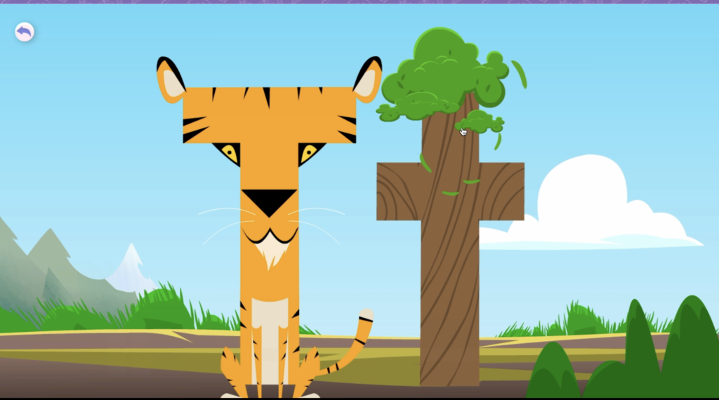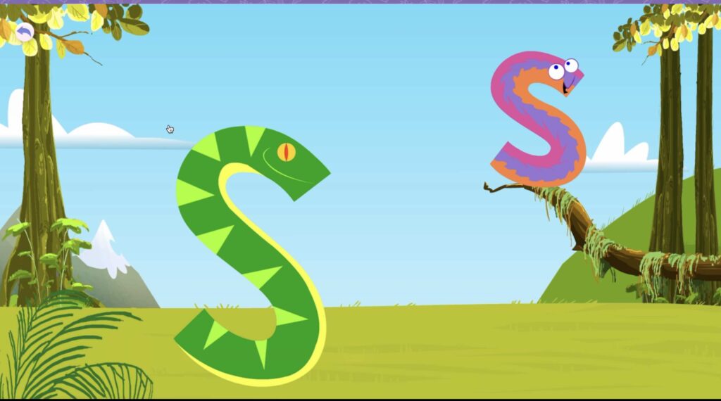 - Phonics lessons that cover letter sounds in the alphabet, their written representation (lowercase and uppercase), starting to read simple words, such us CVC words.