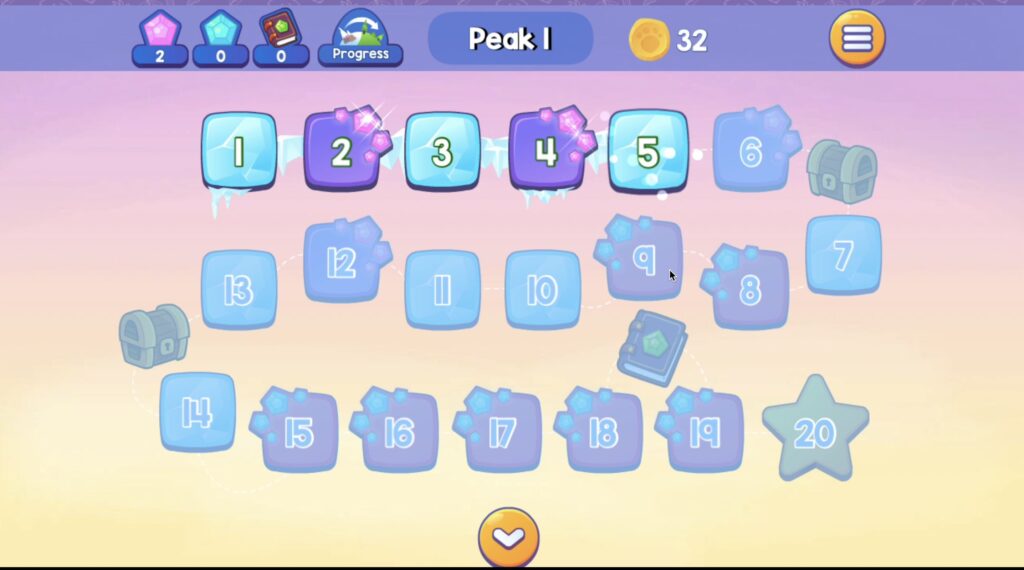 Fast Phonics is organized into 20 levels, called peaks.