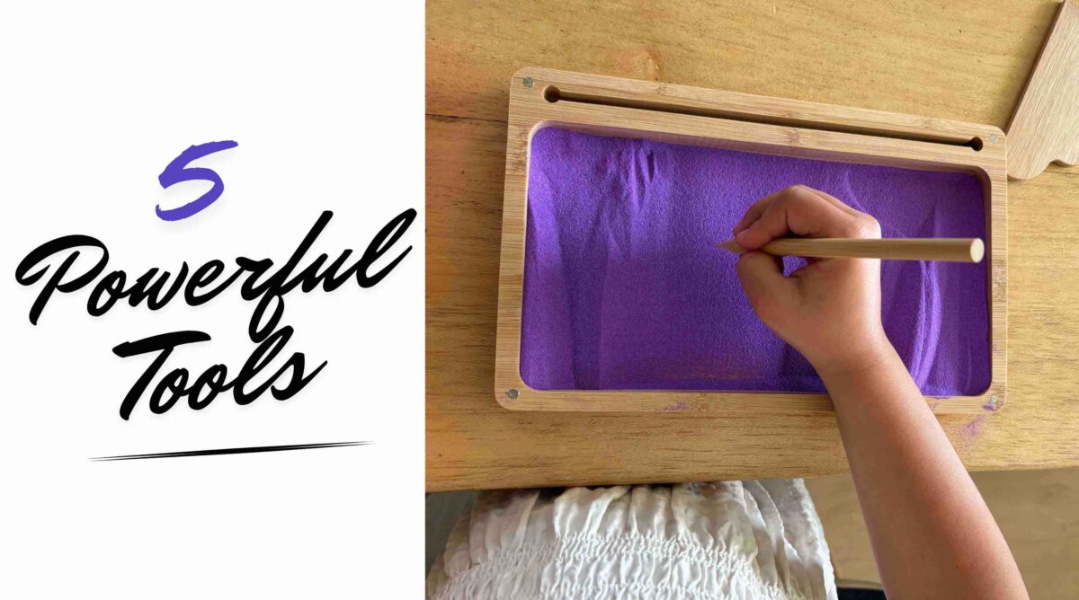• Hands-on learning (sand trays, sandpaper letters)