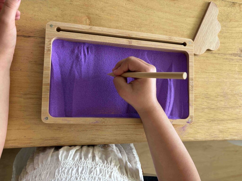 The idea is very simple: a tray filled with sand where children can trace letters using their finger or a stylus. However, the benefits are huge: